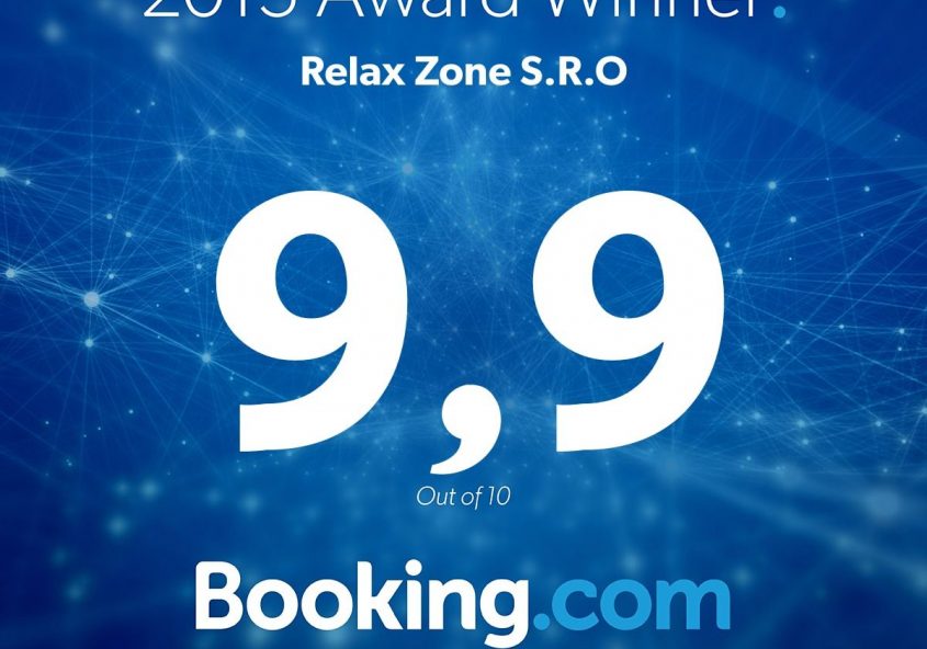 Dnes jsme obdrželi novou plaketu z Booking.com. Za loňský rok se podařilo vylepšit celkové hodnocení našeho Relax Zone z vysokých 9,8 bodů na 9,9! Dle komentářů si ceníte nejen ubytování a samotné…