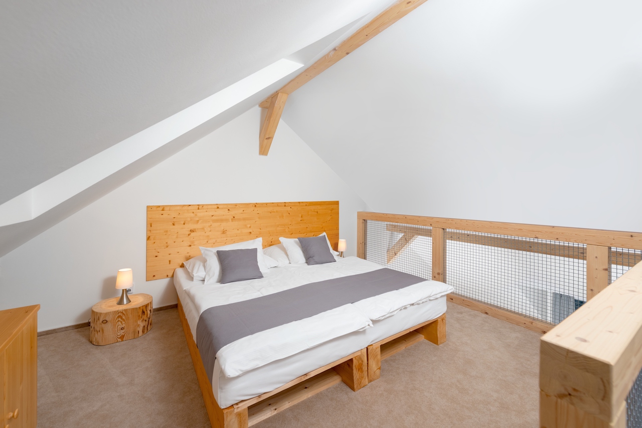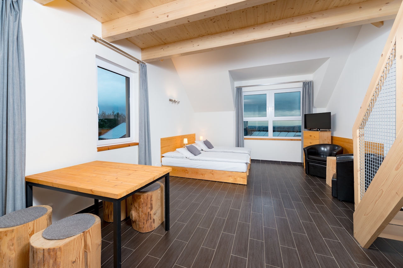 - 22 plnohodnotných lůžek (2x čtyřlůžkový apartmán, 1x 6 lůžkový apartmán, 1x 8 lůžkový apartmán),